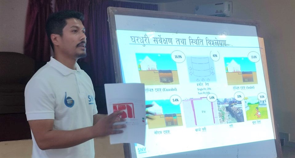 एस एन भी नेपालको सहयोगमा गेरुवा ग्रामीण जागरण संघ बर्दिया नेपालगञ्जद्धारा नेपालगञ्जमा संचालित स्वास्थ्य र बिकासका लागि नगर सरसफाई तथा स्वच्छता परियोजनामार्फत आयोजना गरिएको छलफल एन एन भि नेपालका सिटि अफिसर सुरज राजभण्डारीले सेफ्टी ट्याँकीको आवश्यकता, मलमुत्रको व्यवस्थापन प्रक्रिया, प्लान्टको आवश्यकताका बिषयमा जानकारी गराउनुभएको थियो ।