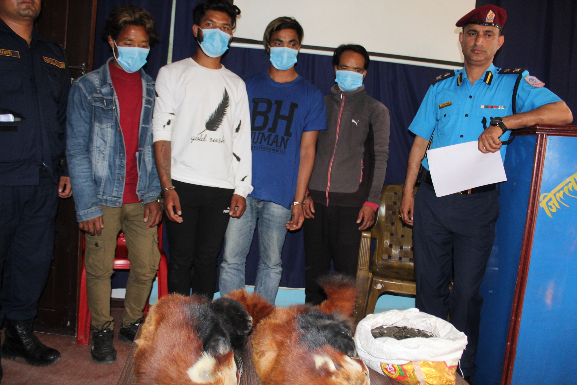 नेपालगञ्ज उपमहानगरपालिका वडा नं १२ कोरियनपुरस्थित एक होटलबाट दुई थान रेडपाण्डाको छालासहित चार जनालाई प्रहरीले पक्राउ गरेको हो ।