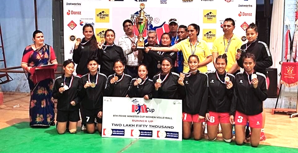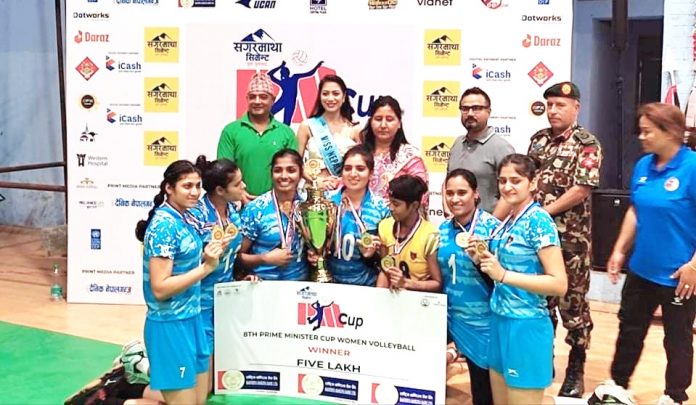 नेपालगन्ज । भारतको हरियाणा स्पोर्टस् क्लब आठौं संस्करणको सगरमाथा सिमेन्ट प्रधानमन्त्री कप अन्तर्राष्ट्रिय आमन्त्रण महिला भलिबल प्रतियोगिताको च्याम्पियन बनेको छ । नेपालगञ्जस्थित कभर्डहलमा सोमबार भएको उपाधि भिडन्तमा हरियाणाले विभागीय नेपाल पुलिस क्लबलाई ३–० को सोझो सेटमा पराजित गर्दै च्याम्पियन बनेको हो । प्रतिस्पर्धात्मक फाइनलमा हरियाणाले पुलिसलाई २६–२४, २५–२१, २५–२३ ले हराएको थियो ।