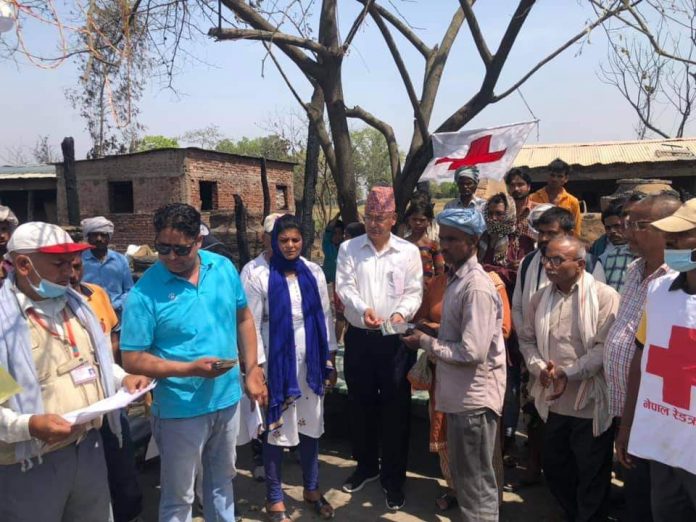 साथै नेपाल रेडक्रस सोसाईटीले पिडित परिवारलाई गैह्र खाद्य सामाग्रीको सेट उपलव्ध गराएको छ ।