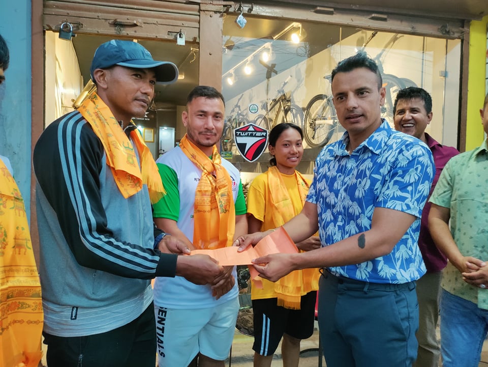 नेपालगन्ज बाई साइकिलिङ, क्रीटिभ ह्यान्स, साइना क्याफेले उहाँलाई सम्मानका साथै बिदाइ गरेको हो । बिदाइ तथा सम्मान कार्यक्रममा नेपालगन्ज बाई साइकिलिङ क्लबका अध्यक्ष गगन थापाले उहाँ सारै मिलनसार खेलाडीप्रति सहयोग र सकारात्मक सोचका साथै नागरिकसंग प्रत्यक्ष जोडिएर काम गरेको र बाई सालिकिलिङ क्लबलाई कम्दिमा सैकिलिङ लेर बनाइदिनु भएकोमा हाम्रो संस्थाले उहाँलाइ सदैब सम्झिरहने छ ।