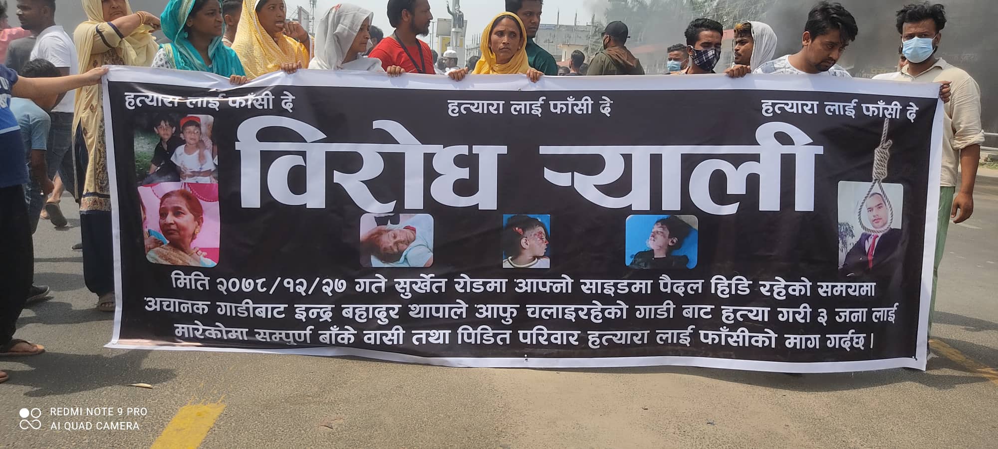 उनीहरुले हत्यारालाई फाँसीको माग गर्दै बिहीबार बिहान नेपालगञ्जको बिपी चोकमा टायर बालेर प्रदर्शन गरेका हुन ।