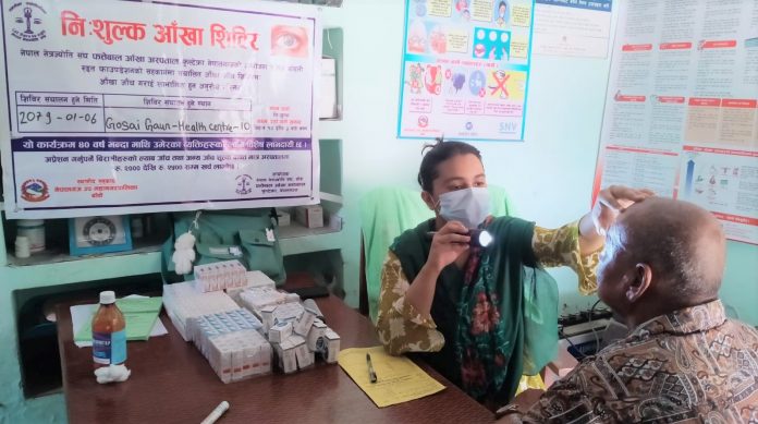 यसैगरी वडा नं १० गोसाईगाउँमा ६२ जनाको निःशूल्क आँखा परीक्षण गरी निःशुल्क औषधि उपलब्ध गराइएको छ भने ४ जनाको मोतिबिन्दुको निःशुल्क शल्यक्रिया गर्न फत्तेबाल आँखा अस्पताल रिफर गरिएको छ ।