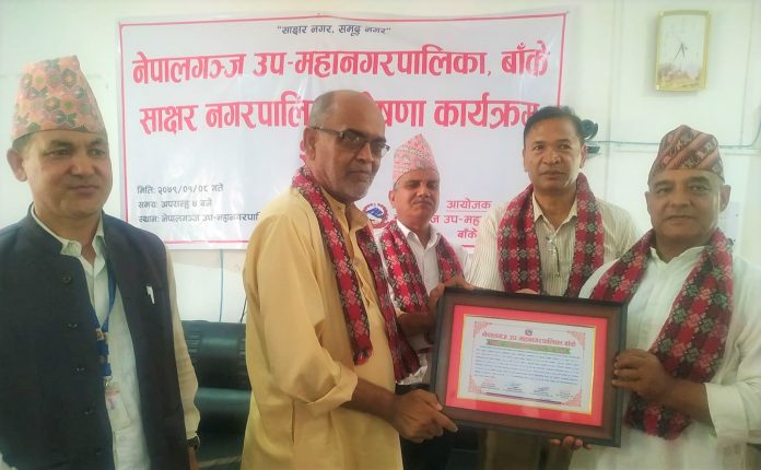 नेपालगञ्ज । नेपालगञ्ज उप–महानगरपालिकालाई साक्षर नगरपालिका घोषणा गरिएको छ ।