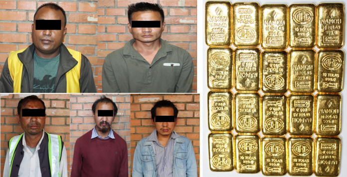 काठमाण्डौ । त्रिभुवन अन्तर्राष्ट्रिय विमानस्थलबाट २ किलो ३ सय ३२ ग्राम सुनसहित पाँच जना पक्राउ परेका छन् ।