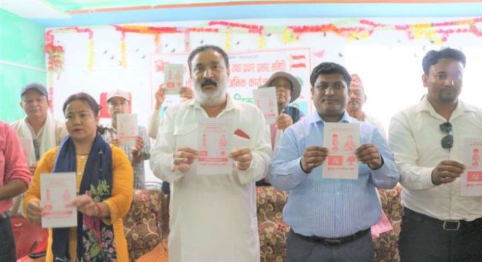 मंगलबार खजुरामा भएको कार्यक्रममा नेपाली कांग्रेसका केन्द्रीय सहमहामन्त्री किशोरसिंह राठौर, गठबन्धनको तर्फबाट अध्यक्ष पदका उम्मेदवार डम्बर विक तुफान, उपाध्यक्षका उम्मेदवार मञ्जु मल्ल र निर्वाचन परिचालन कमिटीका संयोजक राजकुमार विकले संयुक्तरुपमा घोषणापत्र सार्वजनिक गर्नुभएको हो ।