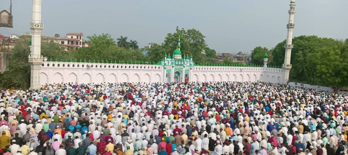 मुस्लिम समुदायको पबित्र महिना रमजानको सोमबार ३० औं रोजा अन्तिम साँझ चन्द्रमा देखिएपछि मंगलबार बिहान स्थानीय ईदगाह तथा मस्जिदहरूमा सामुहिक नमाज पढि ईद पर्व मनाएका हुन ।