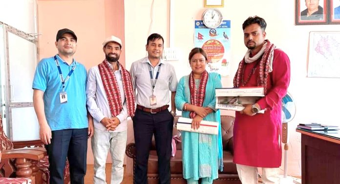 शाखाका प्रवन्धक दिपकराज ओलीले खादा तथा अविर लगाएर बधाई दिदै कार्यकाल सफलताकाे शुभकामना दिनुभयाे ।