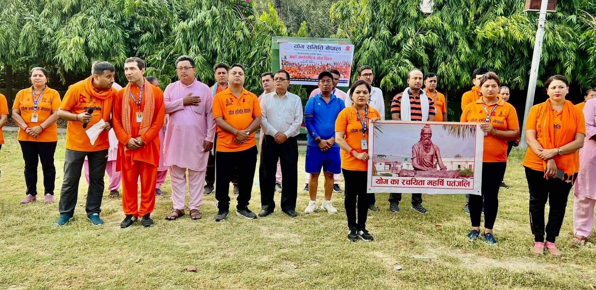 योग समिति नेपालको केन्द्रिय कार्यालय न्यूरोडबाट ब्यान्ड बाजासहित निस्केको ¥याली सेतु विक चोक न्युरोड, सदरलाइन हुँदै महेन्द्र पार्कमा पुगेर कार्यक्रममा परिणत भएको थियो । कार्यक्रममा योगाभ्यास समेत गरिएको थियो ।