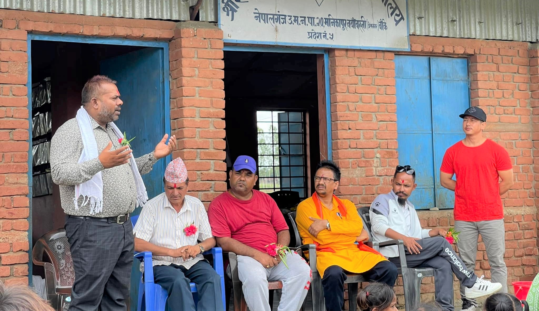 नेपाल मानव धर्म सेवा समिति भेरी राप्ती नेपालगन्जका चादना बाइजीको सभापतित्वमा भएको कार्यक्रममा नेपालगन्ज वडा न. २० का वडा अध्यक्ष कौशल कुमार धोबी, विद्यालयका प्रधानाध्यापक भावना शाह, समितिका संगिता बाइजी, नवराज सापकोटा, राजकुमार योगी र मोहन चन्दको उपस्थिति रहेको थियो ।