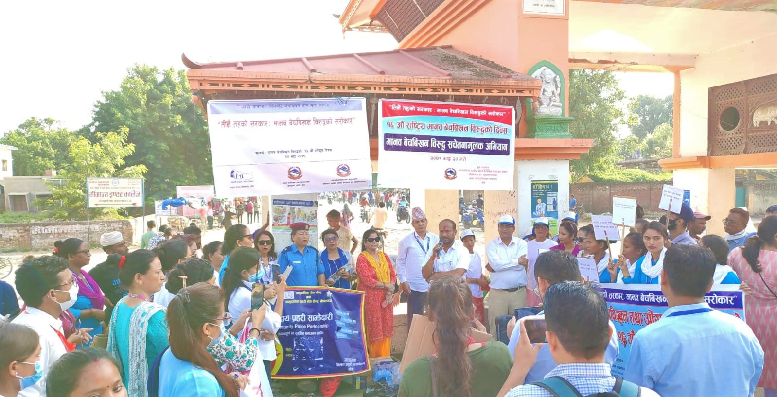 नेपालगञ्ज । “तीनै तहको सरकार : मानव बेचबिखन बिरुद्धको सरोकार” भन्ने मुल नाराका साथ १६ औं राष्ट्रिय मानव बेचबिखन बिरुद्धको दिवस बिभिन्न कार्यक्रम गरि बाँकेमा मनाइएको छ ।