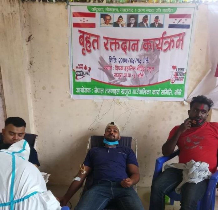 बाँके । तरुण दल खजुरा गाउँपालिकाले शनिबार रक्तदान र पार्टी प्रबेश कार्यक्रम गरेकाे छ ।