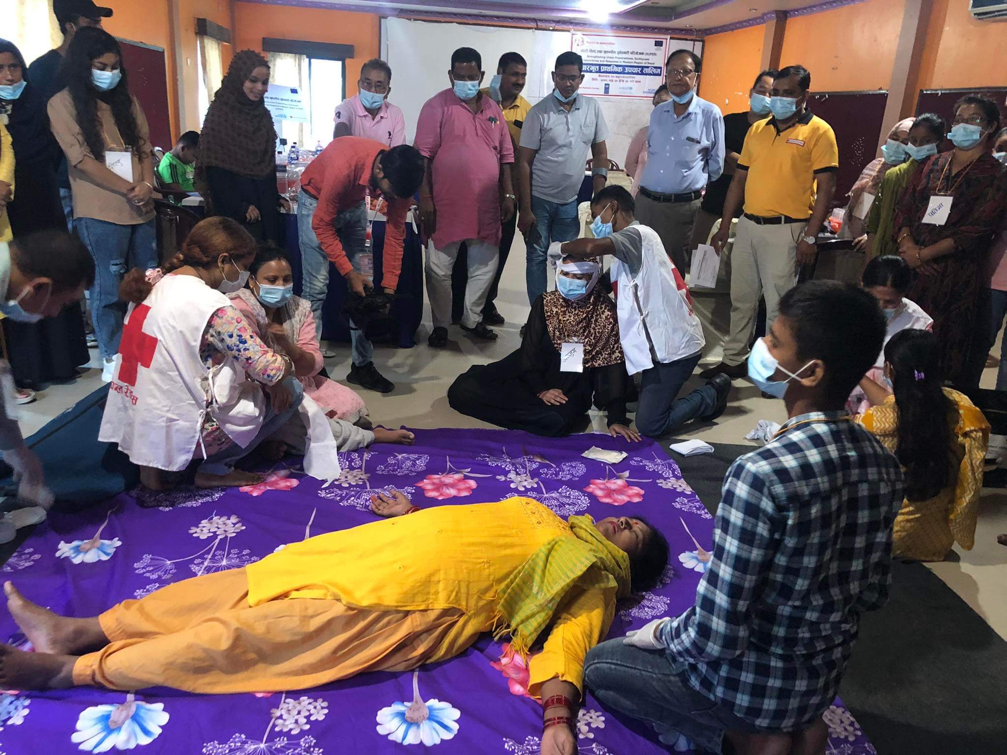नेपाल रेडक्रस सोसाइटी बाँके जिल्ला शाखाको आयोजनामा कृत्रिम घटना अभ्यास र प्राथमिक उपचार किट वितरण गरि दिवस मनाइएको हो ।