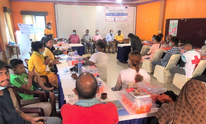 तालिमका सहभागीहरुलाई व्यक्तिगत प्राथमिक उपचार किट वितरण र वडा कार्यालयलाई ठूलो प्राथमिक उपचार किट बाकस हस्तान्तरण गरिएको छ ।