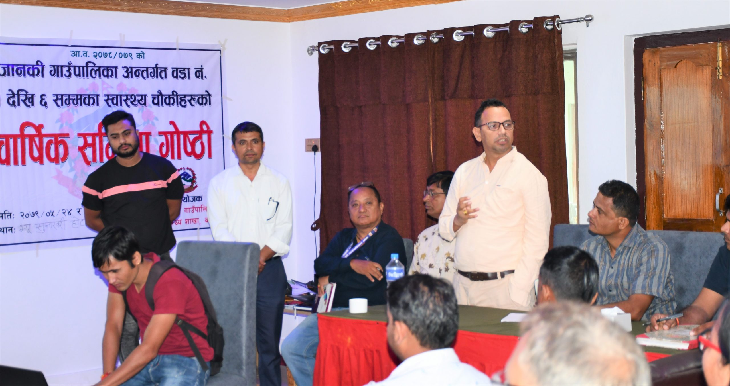 स्वास्थ्य संस्थाहरुले सर्वसाधारणलाई गुणस्तरीय स्वास्थ्य सेवा दिने कुरामा देखाएको गम्भीरताले संस्थालाई अझ उत्कृष्ठ बनाउन सहज हुने बताउनुभयो । सामाजिक बिकास संयोजक धोबीको अध्यक्षमा भएको समिक्षाको समापन भएको थियो ।