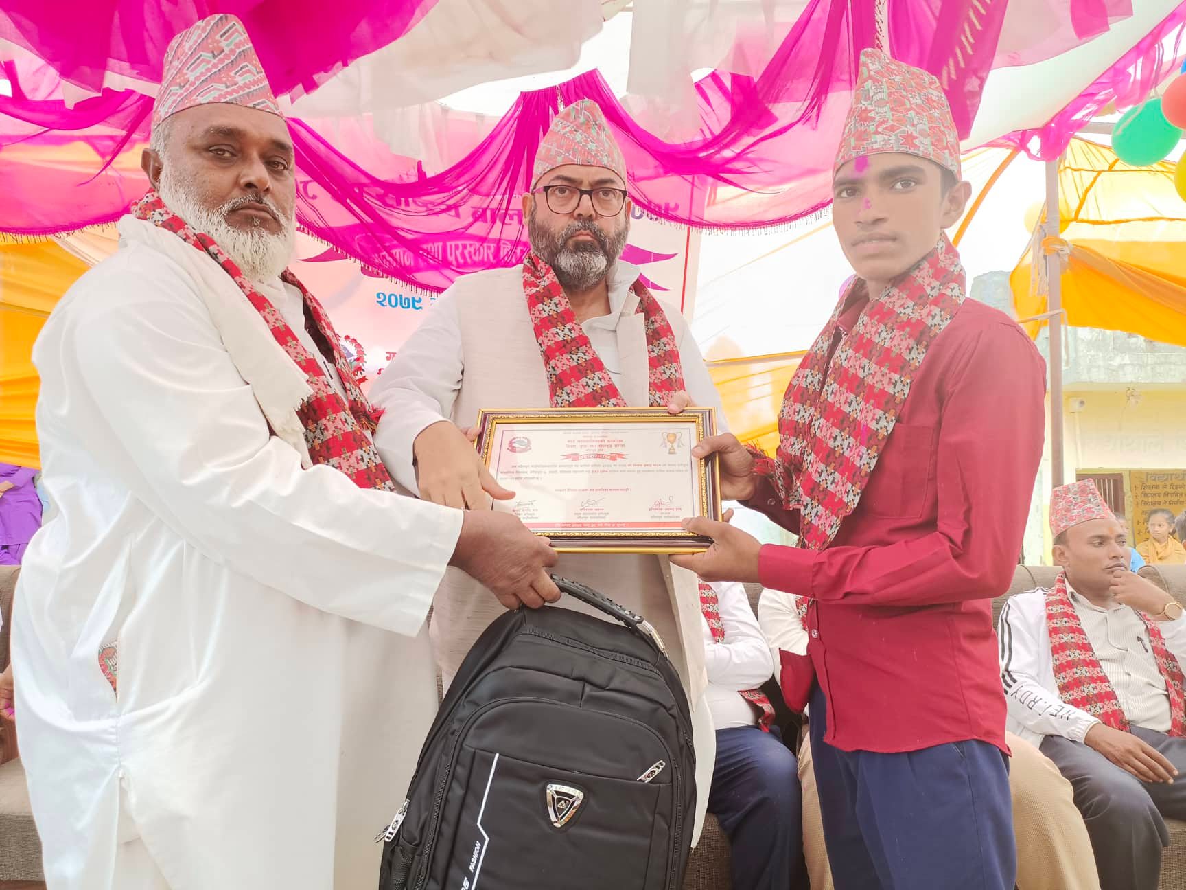गाँउपालिकाले ५८औं राष्ट्रिय बाल दिवसको अवसर पारेर आज महेन्द्र माध्यमिक मटेहिया विद्यालयमा आयोजित कार्यक्रममा गाँउपालिकाभित्र १० कक्षामा उत्कृष्ट नतिजा हासिल गर्ने विद्यार्थीलाई सम्मान गरेको हो ।