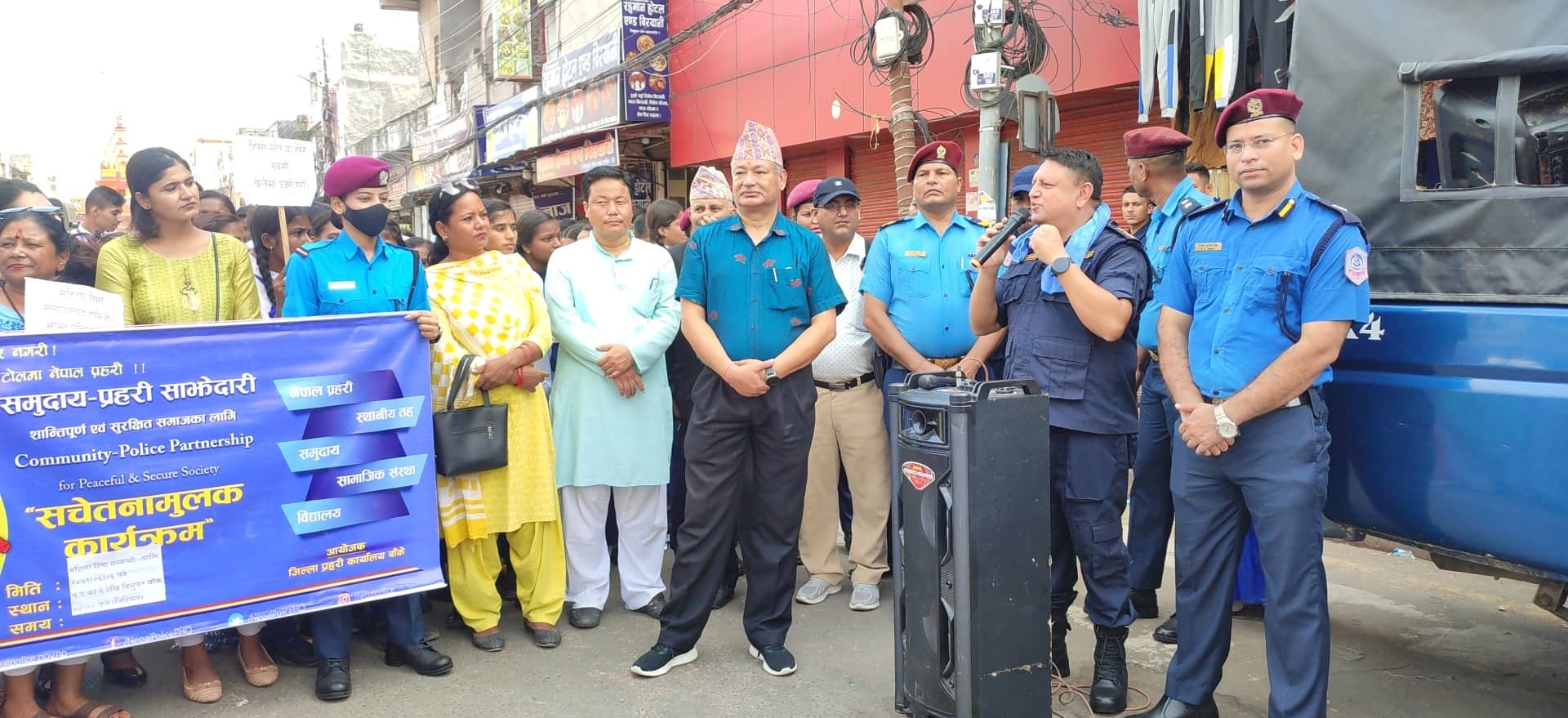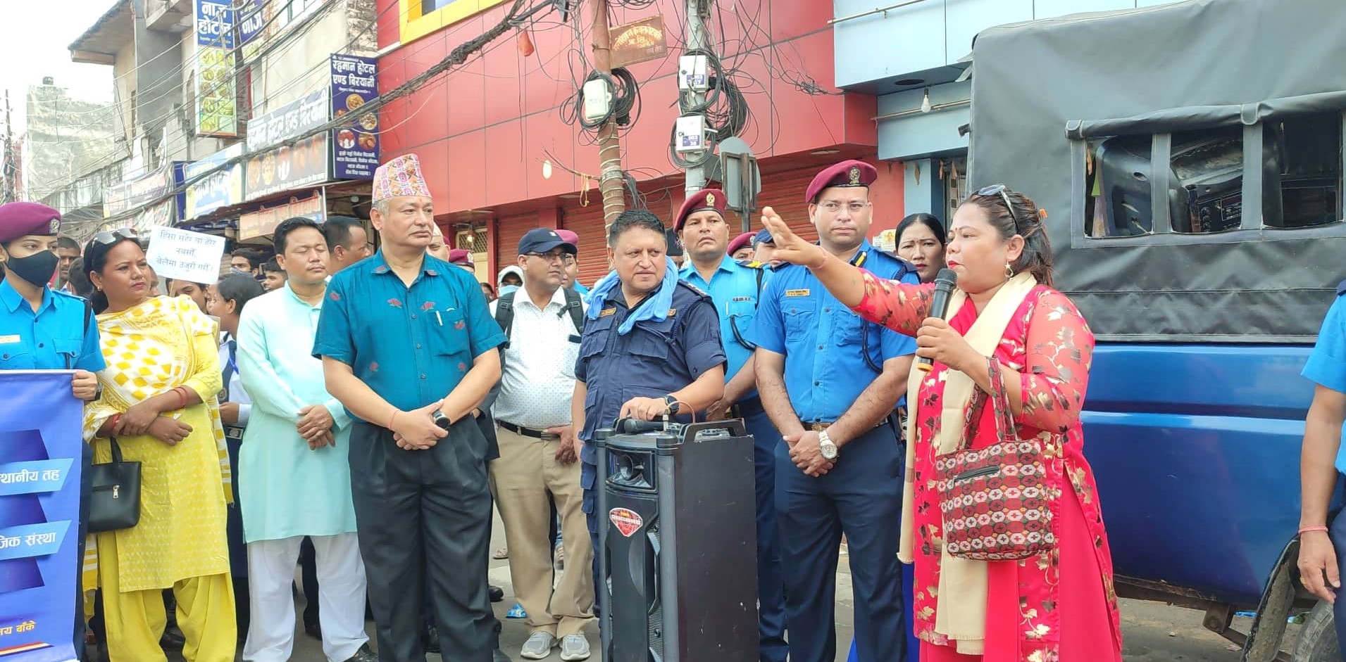 वडा प्रहरी कार्यालयबाट निस्किएको सचेतनामूलक र्याली राप्तीरोड, त्रिवेणीमोड हुँदै त्रिभुवन चोकमा कोणसभामा परिणत भएको थियो । सभामा बोल्दै बाँकेका प्रमुख जिल्ला अधिकारी सुर्य बहादुर खत्रीले हिंसापिडितलाई न्याय न्याय दिनुपर्ने राज्यको दायित्व भएको बताउनुभयो ।