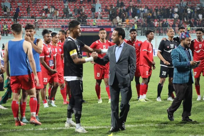 काठमाण्डौं । युवा तथा खेलकुद मन्त्री महेश्वर गहतराज (अथक) ले नेपाली राष्ट्रिय फुटबल टिमलाई बधाई दिनुभएको छ । मंगलबार भएको अन्तराष्ट्रिय मैत्रिपूर्ण खेलमा बंगलादेशबिरुद्ध जित निकाल्न सफल राष्ट्रिय टिमका खेलाडीहरुलाई मन्त्री अथकले बधाई दिनुभएको हो ।
