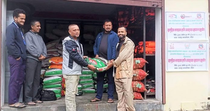 भेरी वातावरणीय विशिष्टता समुह (बी–ग्रुप) ले केएर नेपालसँग साझेदारीमा आश्रयस्थलमा बसेकाहरुका लागि सन्चालन गरिएको सामुहिक भान्साका लागि आवश्यक पर्ने चामल, दाल, आलु लगायतका खाद्य सामग्री राजापुर नगरपालिकालाई हस्तान्तरण गरिएको छ ।