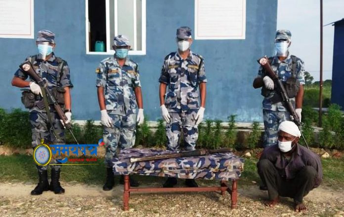 सशस्त्र प्रहरी बल (बिओपी) कालाबन्जारबाट सशस्त्र प्रहरी निरिक्षक सन्तोष डाँगीको कमान्डमा खटिएको गस्ती टोलीले गएराती १ बजे डुडुवा गाउँपालिका वडा नं–६ शिखनपुर्वाका ५६ बर्षीय अजित सिंहलाई भरुवा बन्दुकसहित पक्राउ गरेको हो ।