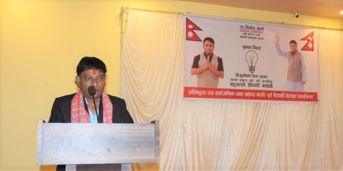 तर आज (शुक्रबार) नेपालगञ्जमा स्वतन्त्र उम्मेदवार डा.विनोद कर्णले चुनावी एजेण्डाका रुपमा रहेका प्रतिबद्धता पत्र सार्वजनिक गर्न राखिएको कार्यक्रम धेरै नै बौद्धिक र सालिन देखियो । यहाँसम्मकी उहाँका बोलीमा ताली नबजाई सहभागी बस्नै सकेनन् ।