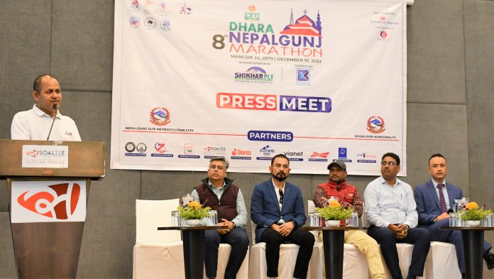 आठौं धारा नेपालगञ्ज म्याराथन यही मंसिर २४ गते शनिवार आयोजना हुँदैछ । नेपालगञ्ज उपमहानगरपालिका अगाडि सुरु समापन गेट रहने आठौं नेपालगञ्ज म्याराथन जानकी गाउँपालिकाको केही स्थान छुँदै कोहलपुर नगरपालिकादेखि उत्तरतर्फ बानियाभारसम्म पुगेर पुन सोही रुटमा फर्किएर बीपी चोकस्थित फिनिसिङ प्वाइन्टमा सम्पन्न हुनेछ ।