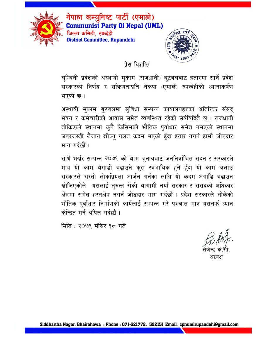 हेर्नुस् एमाले रुपन्देहीको विज्ञप्ति