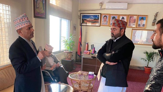 बुटवल । बाँकेको नरैनापुर गाँउपालिका अध्यक्ष इश्तियाक अहमद शाहले लुम्बिनी प्रदेशका मुख्यमन्त्री कुल प्रसाद केसी र अर्थ सहकारी मन्त्री कृष्ण ध्वज खड्कबीच भेटवार्ता भएको छ ।
