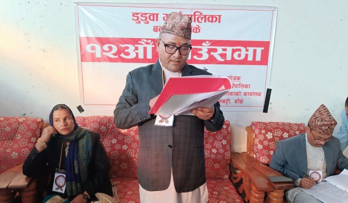 डुडुवा । डुडुवा गाउँपालिकाको नयाँ आर्थिक वर्ष २०७९।०८० को निति तथा कार्यक्रम र बजेट पारित भएको छ । गाउँपालिकाको सोमबार बसेको १२औं गाउँसभाले एक वटा विधियेक, निति तथा कार्यक्रम र रु ६५ करोड ३१ लाख ९३ हजारको प्रस्तावित बजेट सर्वसम्मत रुपमा पारित गरेको हो ।
