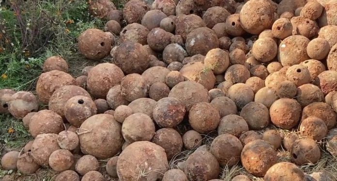 ठूलो संख्यामा गोलाहरू निकालेर बाहिर निकालिएको छ भने अझै पनि जमिनमुनि ठूलो संख्यामा गोलाहरू रहेका छन् । जग खनिएको स्थानमा जमिनमा माथिल्लो सतहमै गोलाहरू देखिएका छन् ।