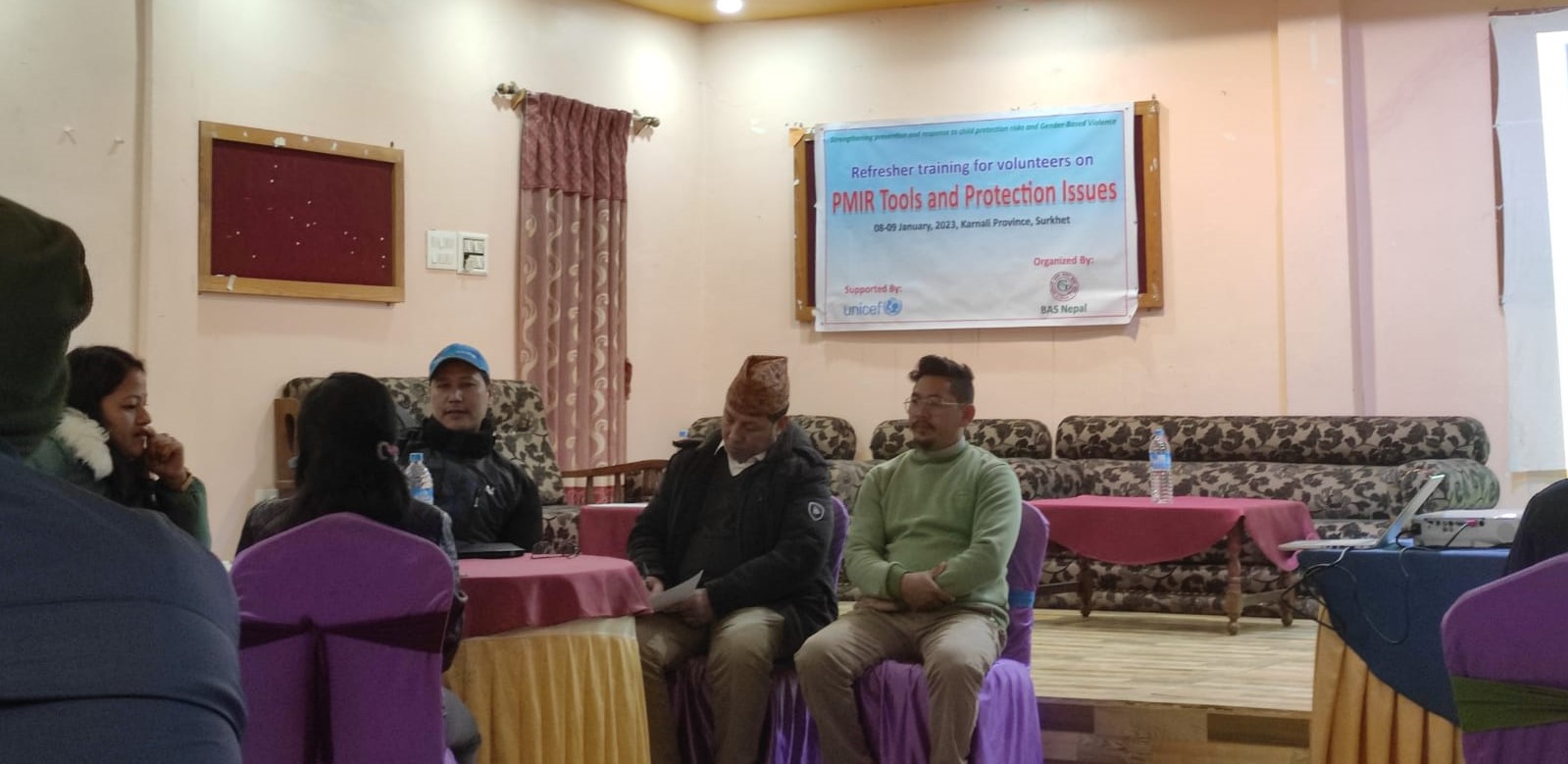बास कर्णाली प्रदेश संयोजक धिरेन्द्र शाहीको अध्यक्षता तथा युनिसेफ नेपाल फिल्ड कार्यालय नेपालगञ्जका प्रमुख दिपक श्रेष्ठको प्रमुख आतिथ्यतामा भएको उद्घाटन कार्यक्रममा बासका कार्यक्रम संयोजक हेमराज भट्टले युनिसेफ नेपालको सहयोगमा कर्णाली र सुदुरपश्चिम प्रदेशमा सञ्चालित बाल संरक्षण तथा लैंगिक हिंसा न्यूनिकरण कार्यक्रम अन्तर्गत पालिका तहमा रहेका स्वंयम् सेवकहरुले गरिरहेका कामहरु तथा तालिमको उद्धेश्यका बारेमा प्रष्ट पार्नुभयो ।