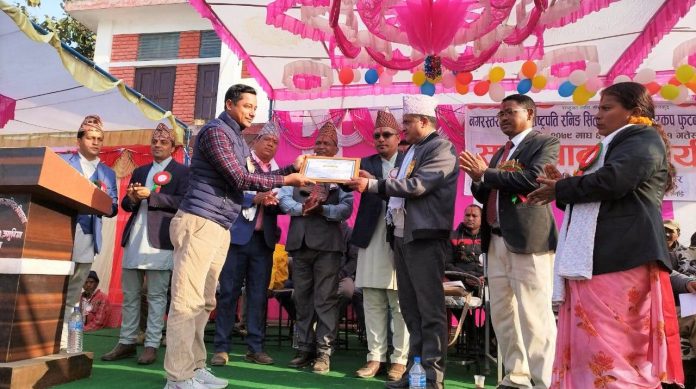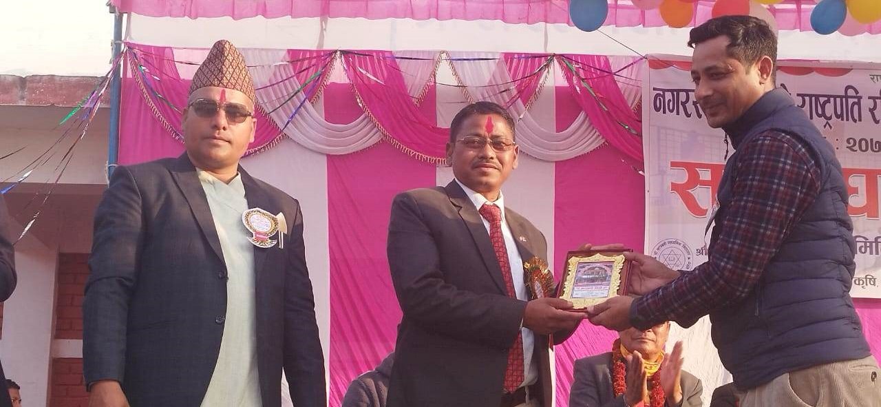 राष्ट्रका लागि खेलकुद, स्वास्थ्यका लागि खेलकुद भन्ने नाराका साथ बर्दियाको बारबर्दिया नगरपालिकामा आयोजना गरिएको दोस्रो राष्ट्रपति रनिङशिल्ड तथा तेस्रो मेयरकप फुटबल प्रतियोगिताको उद्घाटन अवसरमा शैक्षिक क्षेत्रको बिकासका लागि उल्लेख्य योगदान पुर्याएको भन्दै सम्मानित गरिएको हो ।