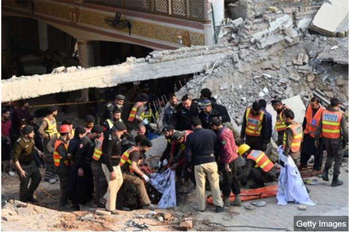नेपालगञ्ज । पाकिस्तानको पेशावरमा भएको विष्फोटमा मृत्यु हुनेको संख्या ५९ पुगेको छ । १५७ जना घाइते भएका छन् । प्रहरी कार्यालय परिसरभित्र रहेको मस्जिदमा नमाजमा सहभागीहरुलाई लक्षित गरी सोमबार दिउँसो आत्मघाती विष्फोट भएको थियो ।