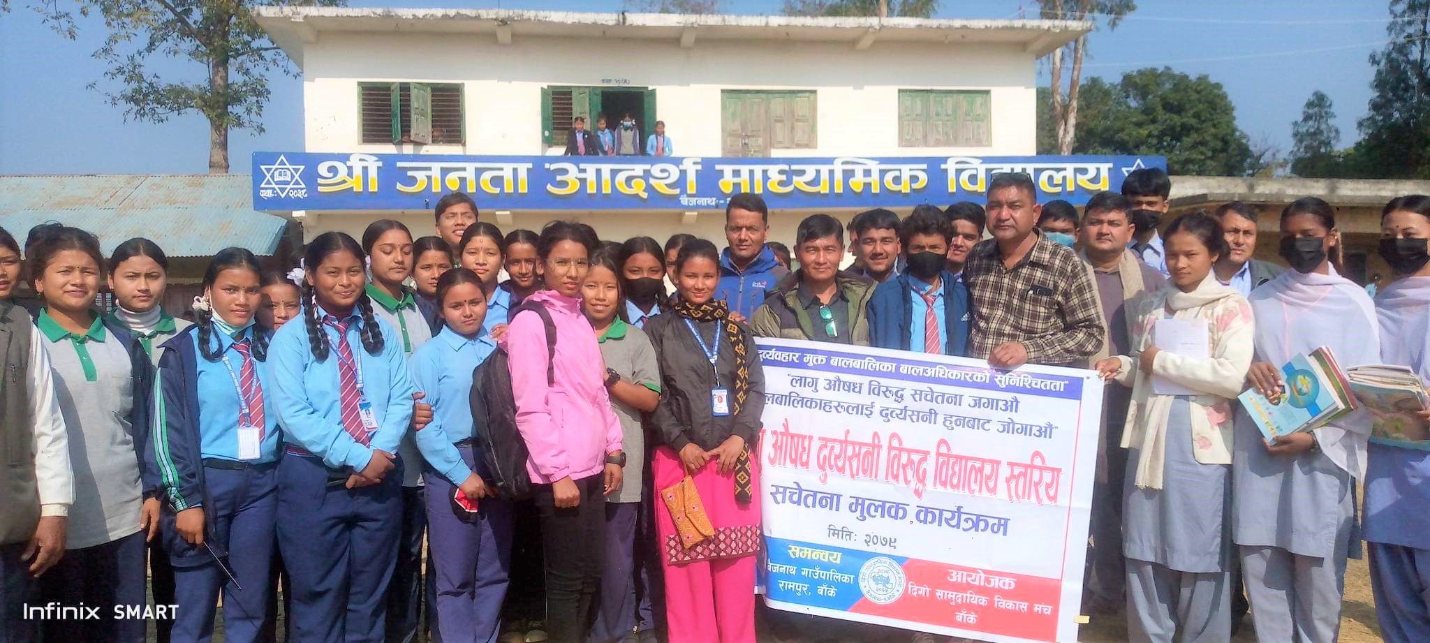पहिलो चरणमा बिद्यालयस्तरमा लागूऔषधबिरुद्धको अभिमुखिकरण अभियान शुरु गरेको र दोस्रो चरणमा समुदायस्तर र बालक्लबलाई समेतमा संचालन गरिने अध्यक्ष बैगारले जानकारी दिनुभयो । लागूऔषध बिरुद्धको अभियान यही मंसिर ११ देखि शुरु गरिएको र हालसम्म बैजनाथ गाउँपालिकाका चार वटा वडामा रहेका बिद्यालयहरुमा सचेतनामूलक कार्यक्रम सम्पन्न भइसकेको छ ।