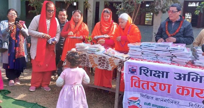 नेपालगन्ज । नेपाल मानव धर्म सेवा समिति भेरी-राप्ती क्षेत्र नेपालगन्जले शिक्षा अभियानअन्तर्गत श्जन कल्याण प्राथमिक बिद्यालय बाँसगढी नगरपालिका वडा न.४ मगरपुर बर्दियामामा रहेका ८५ विद्यार्थीहरुलाई स्टेशनरी सामान कपि कलम वितरण गरेको छ ।