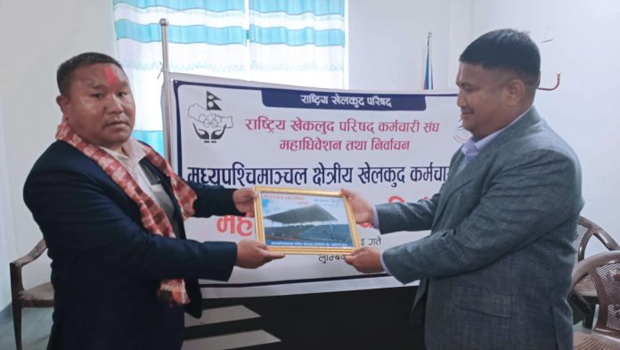 राष्ट्रिय खेलकुद परिषद कर्मचारी संघको अधिवेशनमा लुम्बिनी प्रदेशका १२ जिल्ला मध्य विभिन्न जिल्ला तथा क्षेत्रिय कर्मचारी संघ गठनको प्रक्रिया अन्तर्गत बिहीबार नेपालगन्ज रंगशालामा सम्पन्न भेलाबाट मगर क्षेत्रिय अध्यक्षमा निर्वाचित हुनुभएको हाे ।