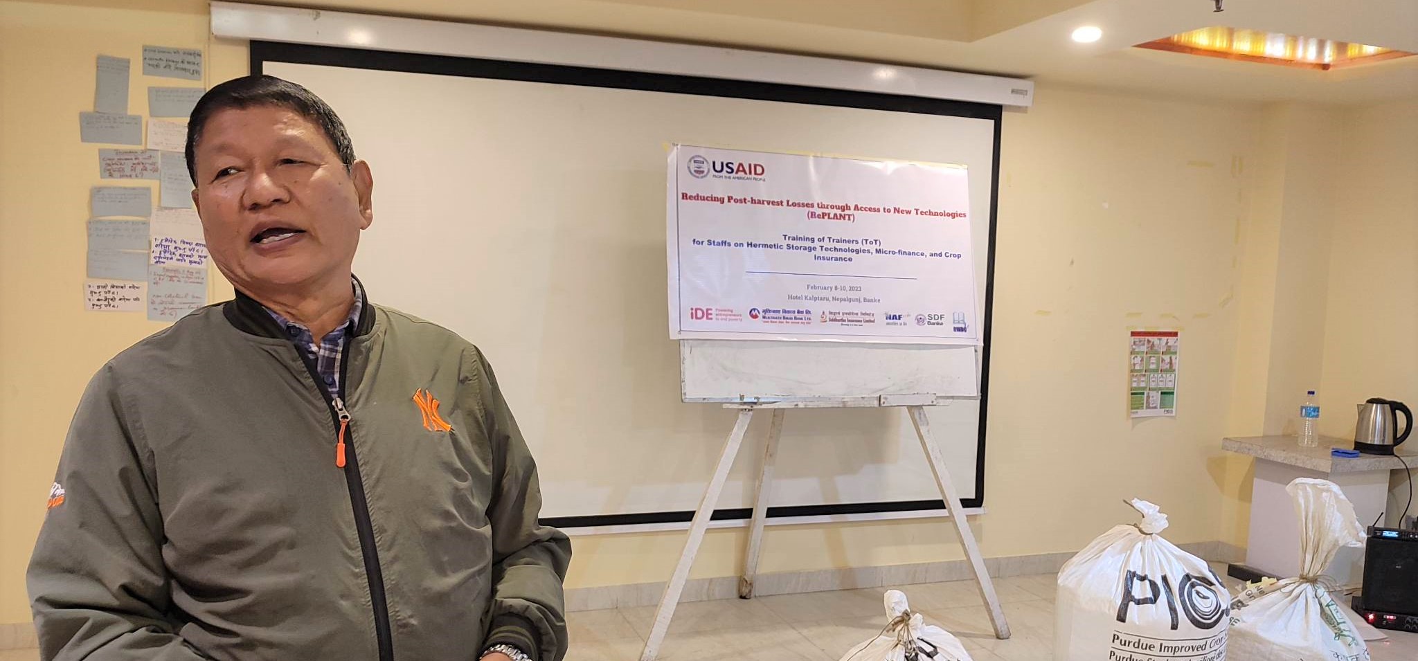 बाँके तथा दांग जिल्लाका किसानहरुलाई सहयोगी हुनेगरी संचालन हुने परियोजना अन्तर्गत रहेका कर्मचारी तथा कार्यान्वयन गर्ने संस्थाका पदाधिकारीहरुलाई ८ देखि १० फ्रब्रुअरी २०२३ सम्म परियोजनाबारे तीन दिने प्रशिक्षक प्रशिक्षण तालिम प्रदान गरिएको हो ।