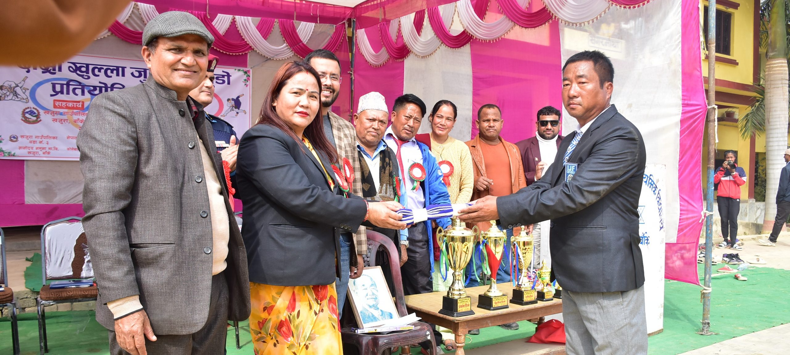 प्रतियोगितालाई खजुरा गाउँपालिका उपाध्यक्ष मञ्जु मल्लले बेल्ट हस्तान्तरण गरेर उद्घाटन गर्नुभएको थियो । उहाँले खजुरालाई चिनाउन जुडा प्रतियोगिताले सहयोग गरेको बताउनुभयो । उहाँले खजुरा जुडोको हब बन्दै गएपनि जुडोको लागि कुनैपनि भवन नभएकोले पालिकाले भवन निर्माणका लागि आगामी वर्षदेखि काम गर्ने प्रतिबद्धता जनाउनुभयो ।