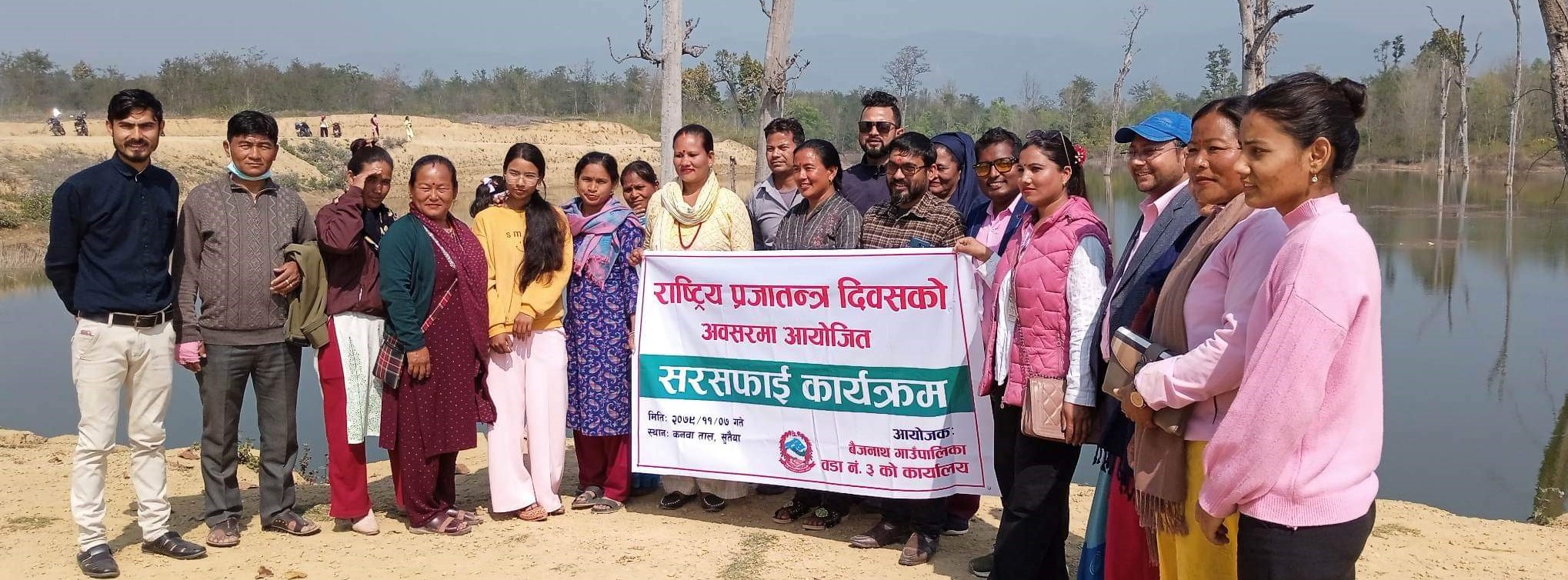 नेपालगञ्ज । राष्ट्रिय प्रजातन्त्र दिवसको अवसर पारेर बाँकेको बैजनाथ गाउँपालिका वडा नं-३ को ‘कनवा ताल’ क्षेत्रमा सरसफाई गरिएको छ ।