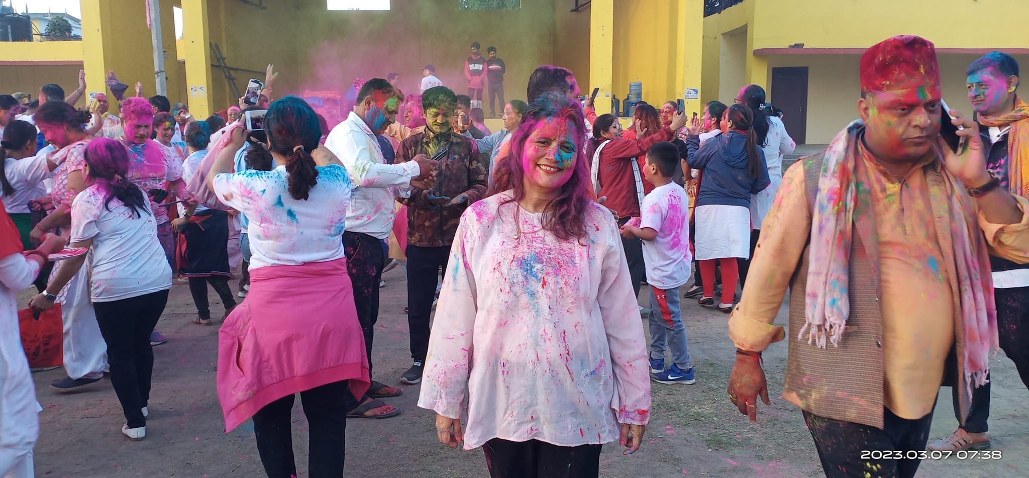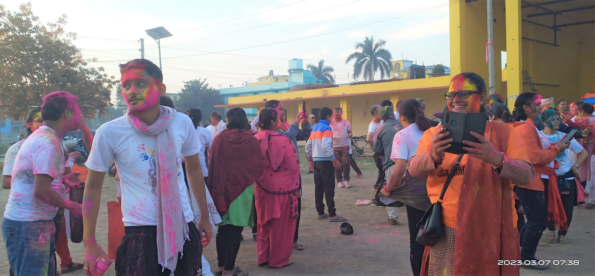 योग कार्यक्रममा सहभागि भएका योग समितिका पद्दाधिकारी, सल्लाहकार, प्रशिक्षक तथा साधारण सदस्यबीच शान्तिपुर्ण सौहार्दपुर्ण होली मिलन तथा शुभकामना साटासाट गरिएको योग प्रशिक्षक सुमित्रा सुबेदीले बताउनुभयो ।