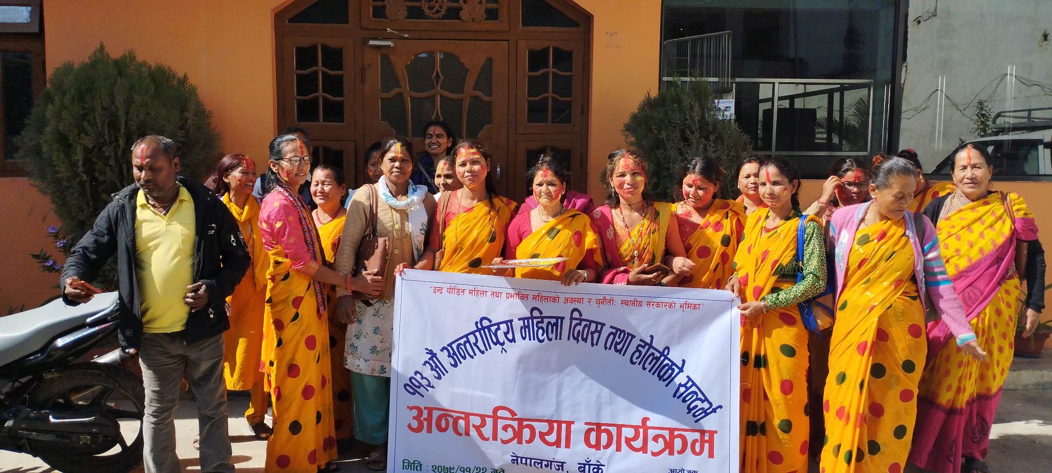 कार्यक्रममा बरिष्ठ अधिवक्ता तथा नेपालगञ्जका पूर्व मेयर बिजय गुप्ता, नेपालगञ्ज उपमहानगरपालिका सामाजिक बिकास महाशाखा प्रमुख शोभा शाह लगायतको उपस्थिति रहेको थियो । सो अवसरमा एकआपसमा होली खेलेर शुभकामना साटासाट गरिएको थियो ।