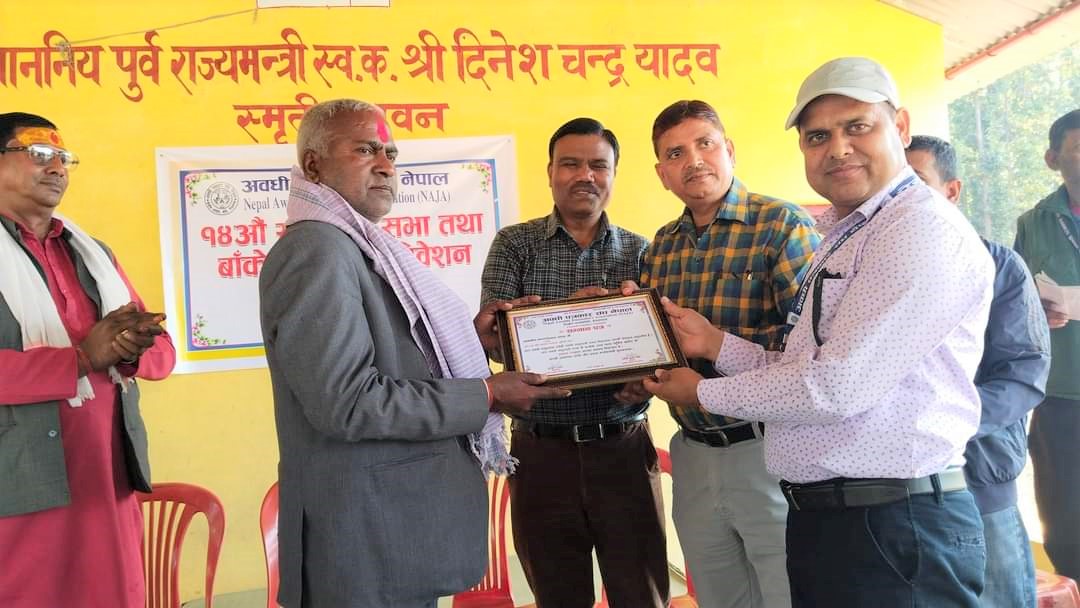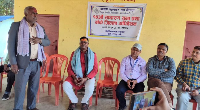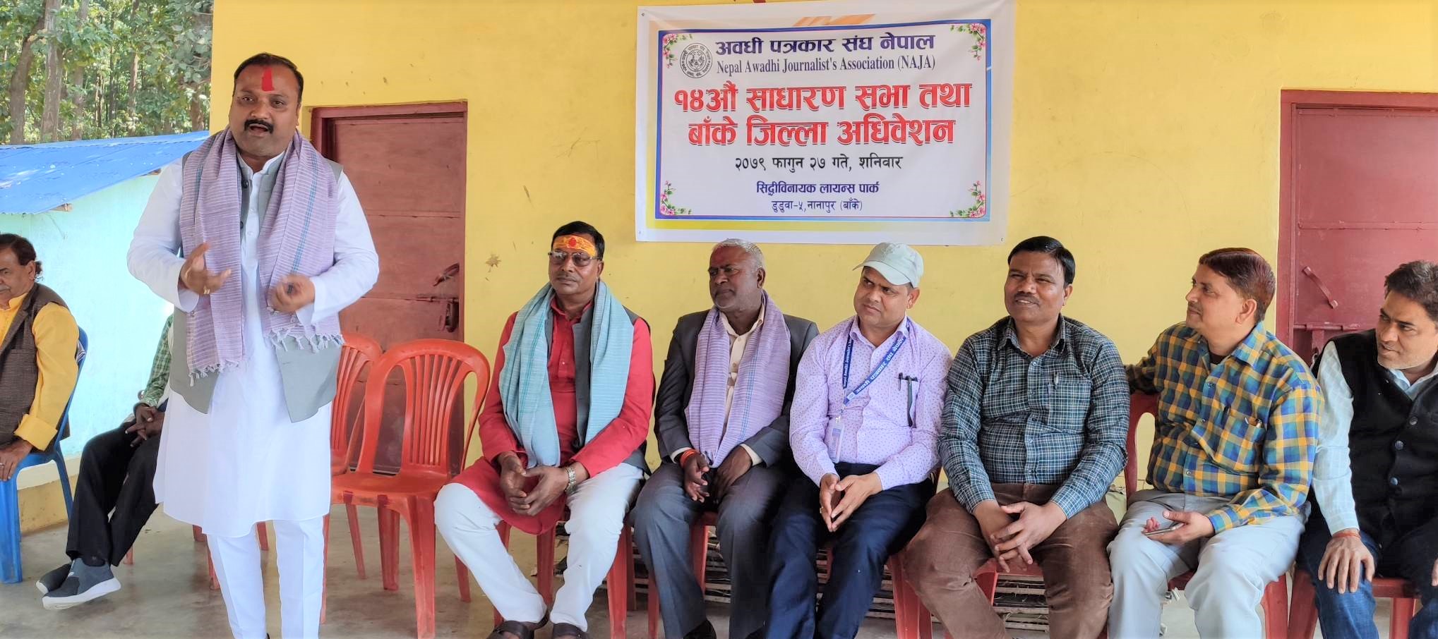 नेपालगन्ज । अवधी पत्रकार संघ नेपाल बाँकेको १४ औं वार्षिक साधारणसभा तथा जिल्ला अधिबेशन आज सकिएको छ । पर्यटकीय क्षेत्र बाँके डुडुवा वडा नं ५ स्थित पार्कमा आयोजित सभाको उद्घाटन गर्दै लुम्बिनी प्रदेशका कृषि तथा भुमि व्यवस्था मन्त्री भण्डारीलाल यादवले अवध क्षेत्रको रुपमा रहेको लुम्बिनी सरकारले अवधी भाषा, कला, संस्कृतिको संरक्षण तथा सम्वद्र्धनमा विशेष पहल गर्ने बताउनुभयो ।