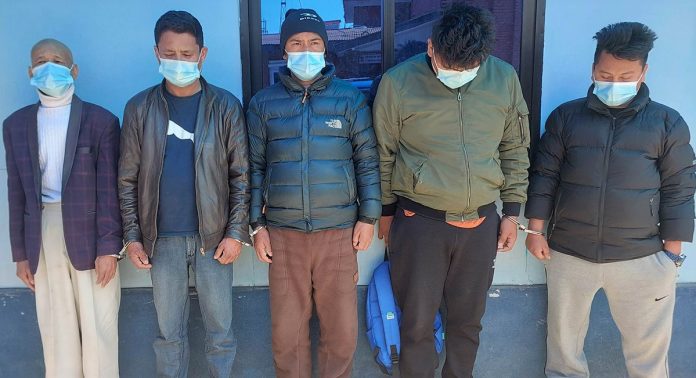 झापा घर भई इमाडोल बस्ने ४७ वर्षीय कृष्णबहादुर कटुवाल, बबरमहल घर भई मध्यपुर ठिमी बस्ने ७० वर्षीय न्युल्केश श्रेष्ठ, मोरङ घर भई धोबीघाट बस्ने ४९ वर्षीय हिरालाल शिवाकोटी, तनहुँको तिब्बतियन शरणार्थी क्याम्पमा बस्ने २५ वर्षीय लोब्साङ ठिन्ले र गोदावरी बस्ने ३० वर्षीय विजय लामालाई प्रहरीले पक्राउ गरेको हो ।