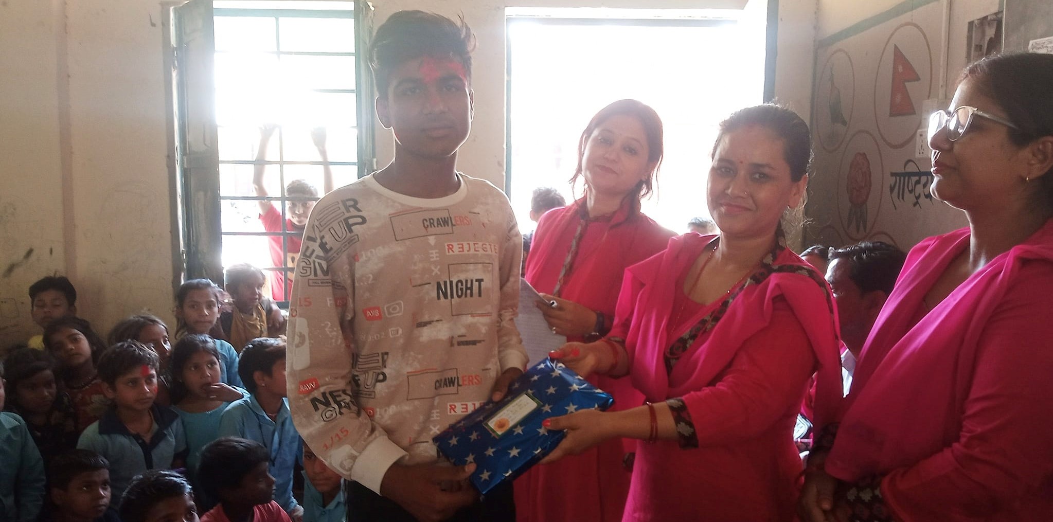 बिद्यालय अवधीभर बिद्यालयमा रहँदा राम्रो काम, राम्रो पढाई, असल आचारण तथा व्यवहार र अध्ययनमा उत्कृष्टता देखाएकाहरुलाई पुरस्कृत गरिएको बिद्यालयका प्रधानाध्यापक आदित्य बर्माले जानकारी दिनुभयो ।