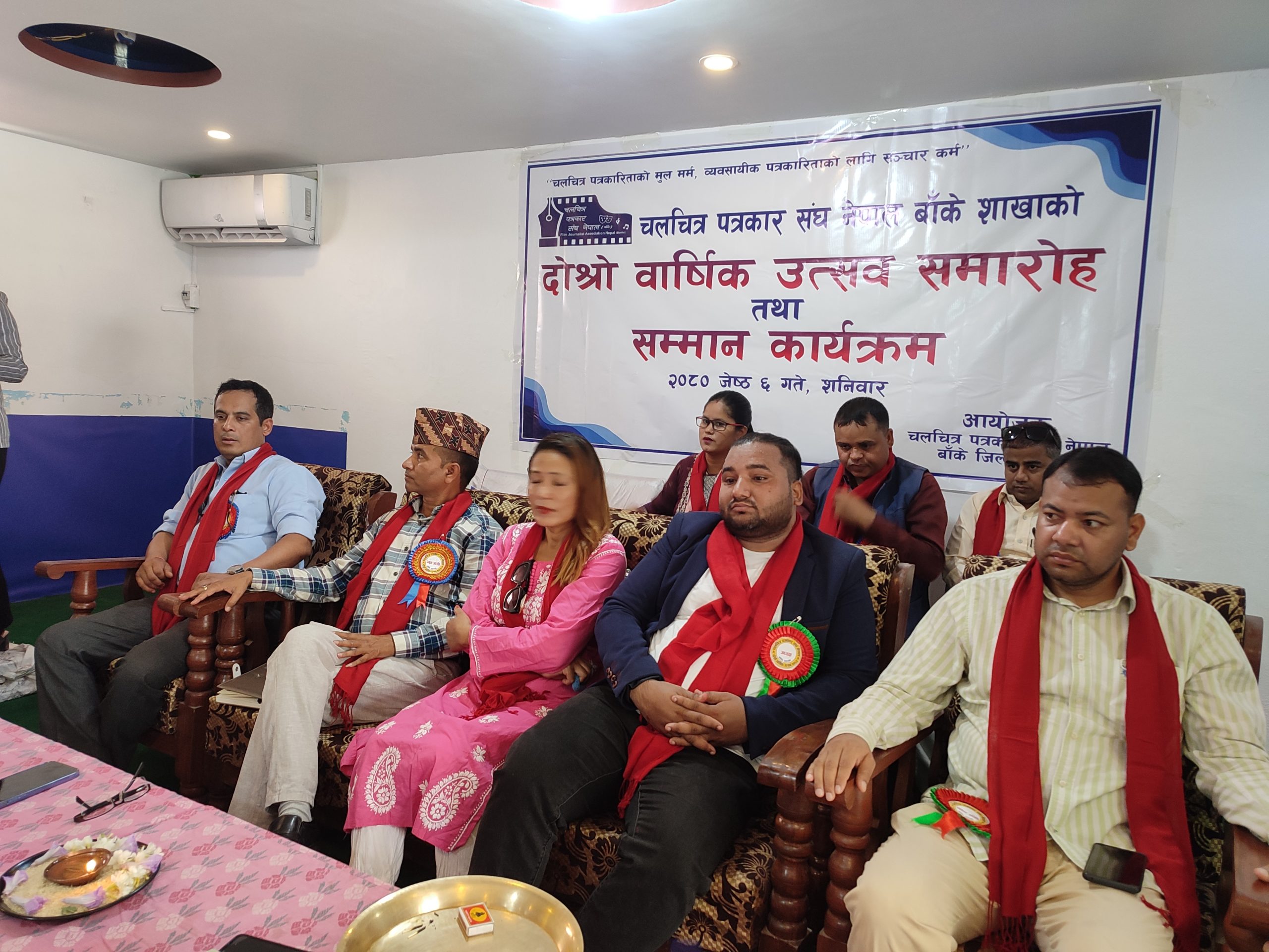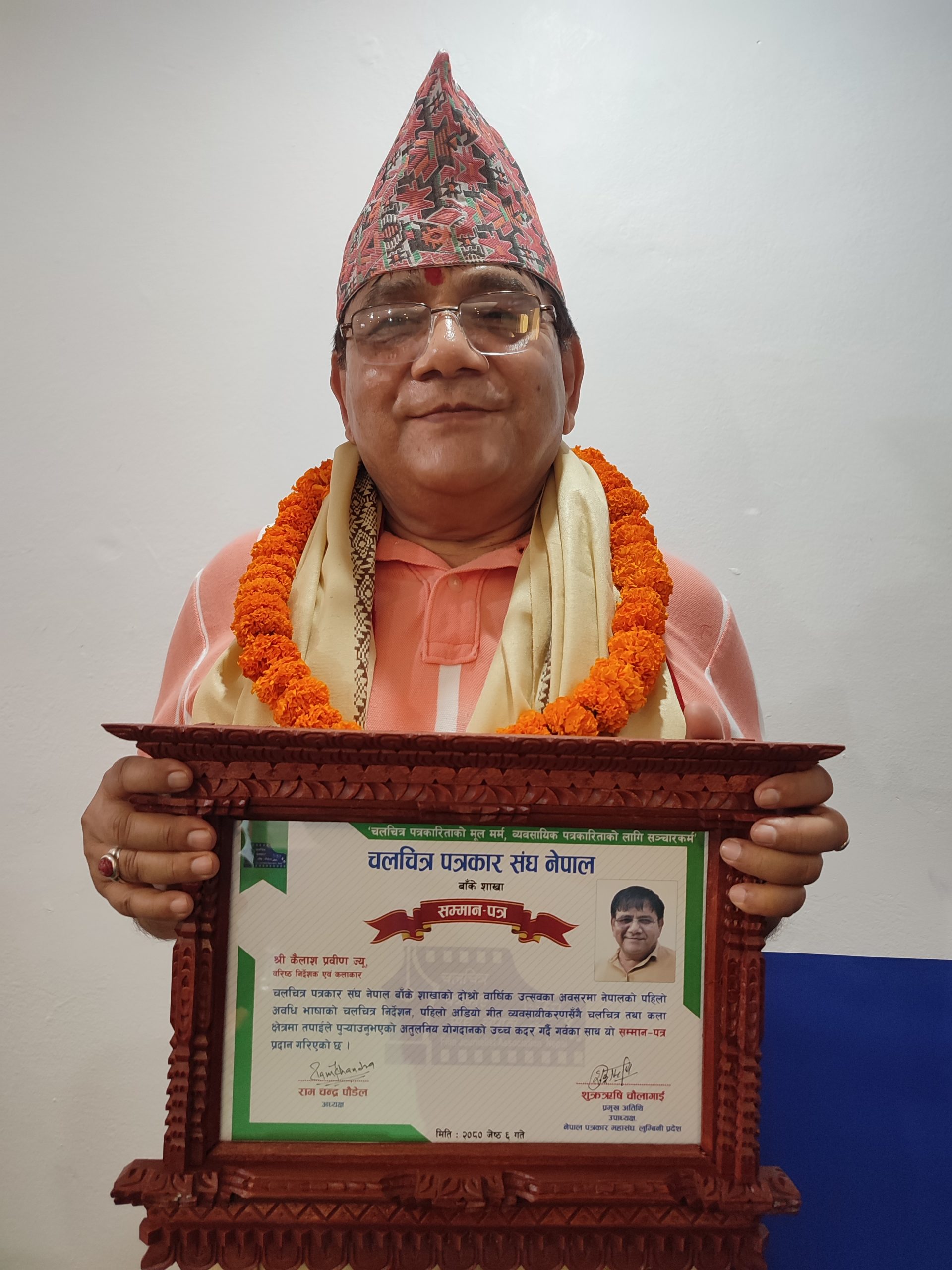 चलचित्र पत्रकार संघ बाँके शाखाले आफ्नो दाेस्राे वार्षिकोत्सबकाे अवसरमा नेपाली चलचित्रकाे ईतिहासमा अहंम भूमिका लेख्ने बरिष्ठ निर्देशक कैलास प्रबिण तथा चलचित्र क्षेत्रमा कलम चलाउने फिल्मीपत्र डटकमका सम्पादक ज्ञानु संगम खडकालाई सम्मानित गरिएका हाे ।