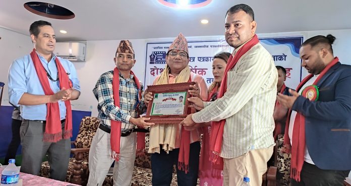 सम्मान समाराेहकाे उद्घाटन शत्रमा बाेल्दै नेपाल पत्रकार महासंघ लुम्बिनी प्रदेश उपाध्यक्ष शुक्रऋृषि चाैलागाईले चलचित्र पकारिताले माेफसलमा नयाँ बिधा ल्याएकाे बताउनुभयाे ।