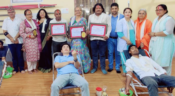 नेपाल स्वयंसेवी रक्तदाता समाज बाँकेकी अध्यक्ष दिला शाहको अध्यक्षता तथा नेपाल मानव धर्म सेवा समिति भेरी राप्ती कर्णालीका प्रभारी साधना वाईजीको प्रमुख आतिथ्यमा सम्पन्न सो कार्यक्रममा प्रमुख अतिथि वाईजी र समाजका अध्यक्ष शाहले १५६ औं पटक रक्तदान गरी उत्कृष्ठ स्वयंसेवी रक्तदाताहरु गोपी नाथ वैश्य, ७६ औं पटक रक्तदान गर्ने उत्कृष्ठ महिला रक्तदाता सरिता ज्ञवाली, ९५ औं पटक रक्तदान गरी नेपाली पत्रकारहरुमध्ये सबैभन्दा बढी रक्तदान गर्ने पत्रकार पवन जायसवाल र धेरै व्यक्तिहरुको ज्यान बचाउने कार्यमा योगदान पुर्याउनुभएका सुनिल परियारलाई सम्मान पत्रले सम्मानित गर्नु भएको थियो ।