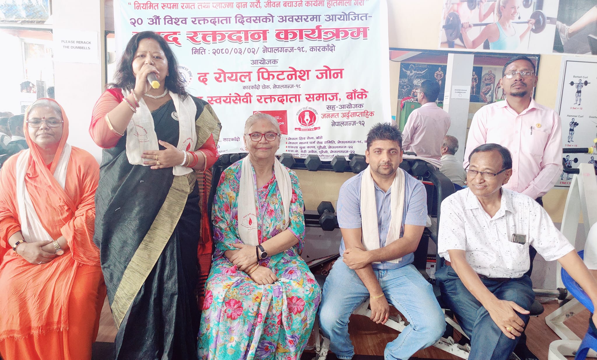 ‘नियमित रुपमा रगत तथा प्लाज्मा दान गरौँ, जीवन बचाउने कार्यमा हातेमालो गरौँ’ भन्ने नाराका साथ विश्व रक्तदाता दिवसको अवसरमा नेपाल स्वयंसेवी रक्तदाता समाज बाँके र द रोयल फिटनेश जोनको संयुक्त आयोजनामा शनिवार सम्पन्न रक्तदान कार्यक्रममा ५१ जनाले रक्तदान गरेका छन् ।