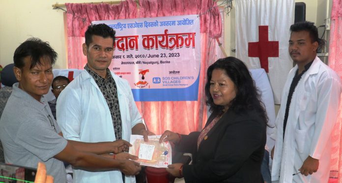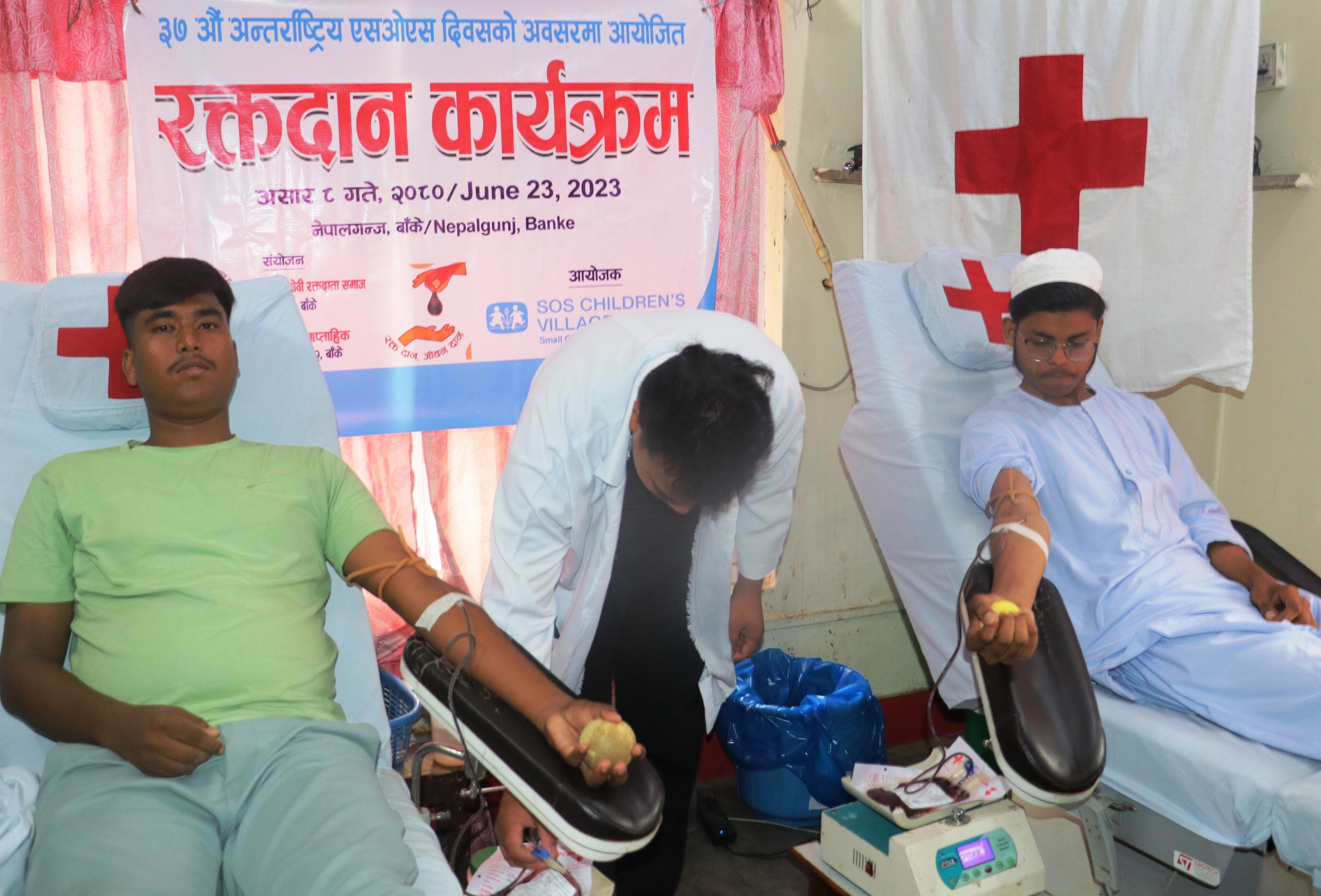 नेपालगन्ज । एसओएसको ३७ औं अन्र्तराष्ट्रिय दिवसको अवसरमा शुक्रवार एसओएस युवालय नेपालगन्जले रक्तदान गरेको छ । सो कार्यक्रममा महिला पुरुष गरी ३५ जनाले रक्तदान गरेका छन् ।