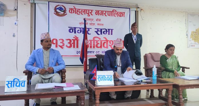 कोहलपुर । कोहलपुर नगरपालिकाको १३ औं नगरसभा सुरु भएको छ । पालिकाले आगामी आर्थिक वर्षका लागि नीति तथा कार्यक्रम र बजेट प्रस्तुत गरेको छ ।